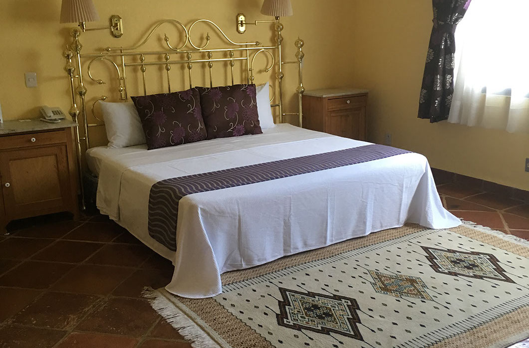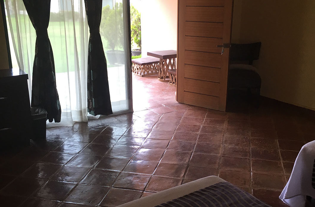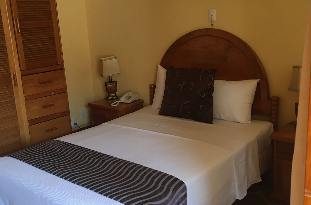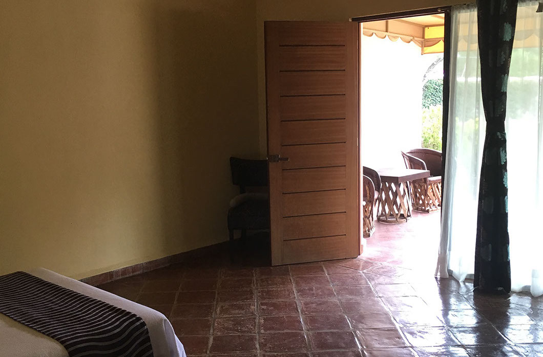 Jr suite con 2 camas matrimoniales, television de pantalla plana, vestidor y baño, tiene salida inmediata al jardin y está cerca de la alberca