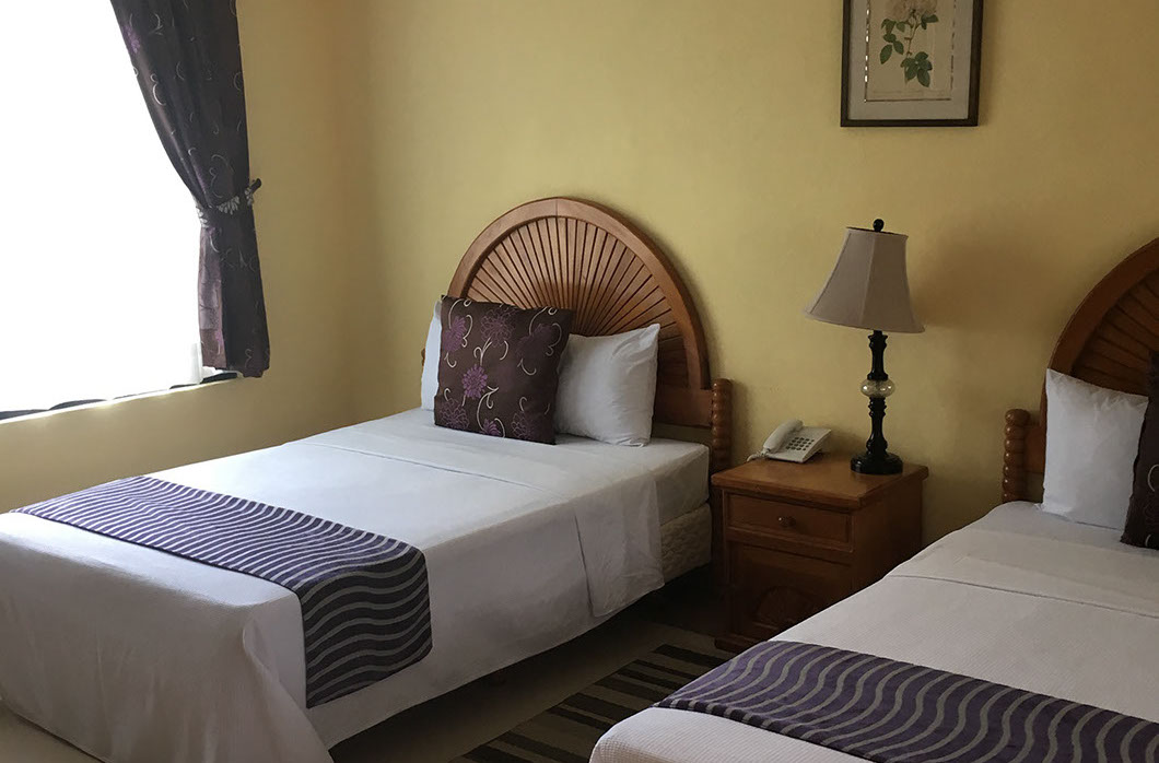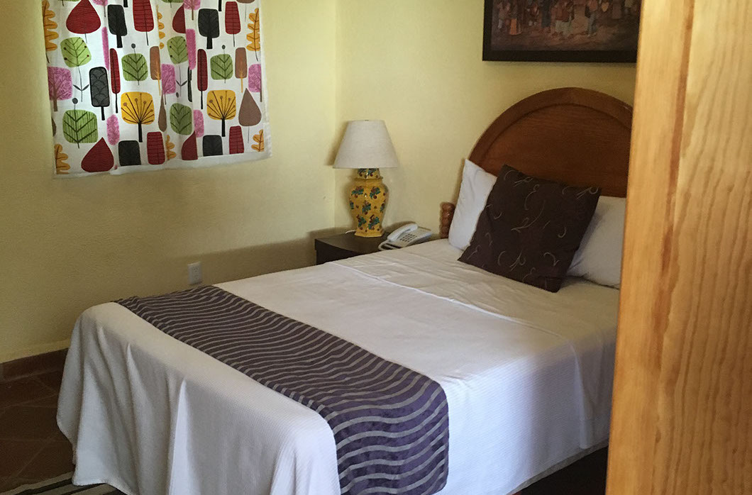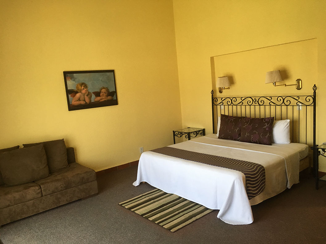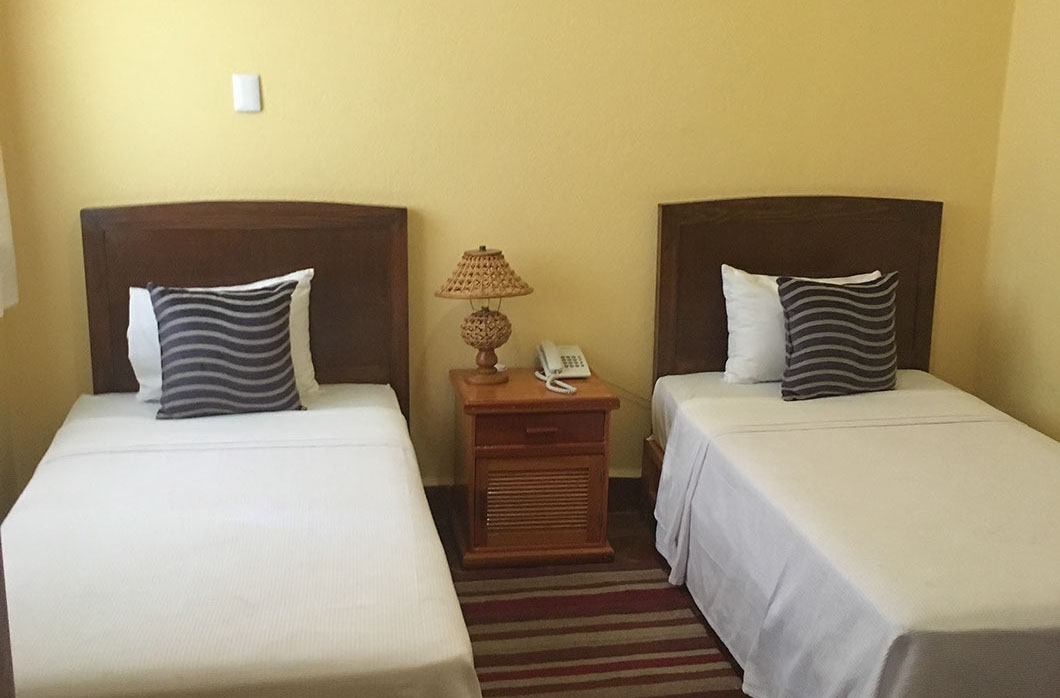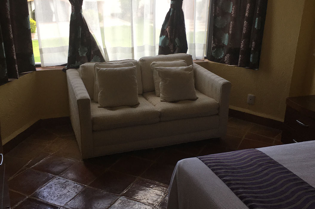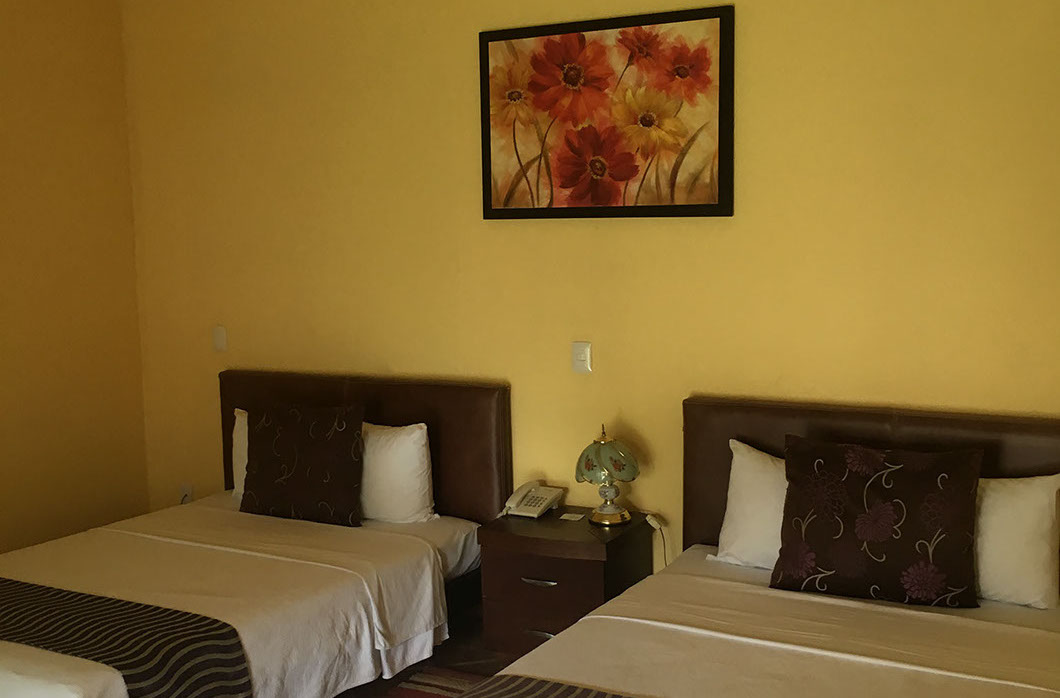 Jr suite con 2 camas matrimoniales y opcion a sofa cama (costo extra), television de pantalla plana, balcon con vista al jardin, una paequeña mesa de trabajo y baño
